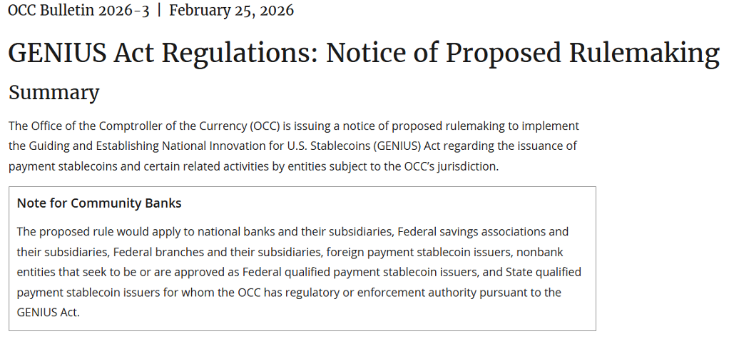 지니어스 법안(GENIUS Act) 규제 룰메이킹 문서 (출처: occ.gov)