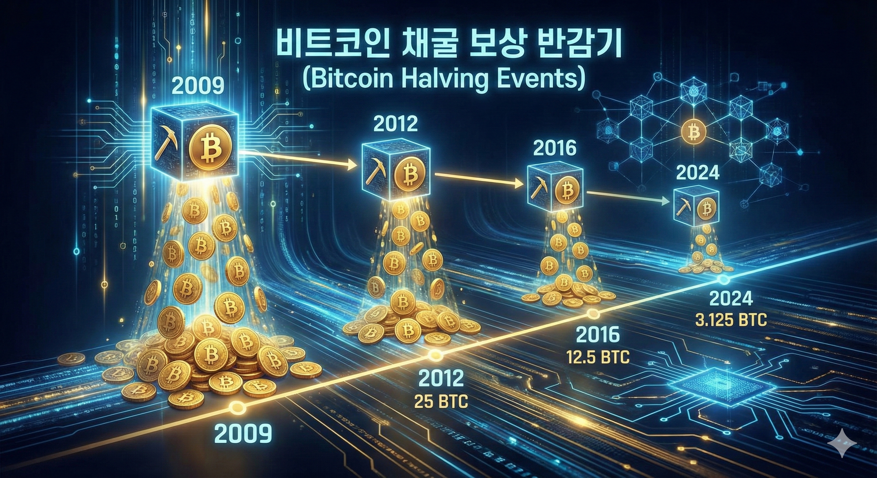사토시 나카모토는 중앙은행이 통화량을 재량으로 늘릴 수 있는 법정화폐와 달리, 비트코인의 발행량과 발행 속도를 코드로 고정해 예측 가능한 공급 구조를 만들었습니다. 반감기는 단순히 비트코인의 가격을 올려주는 이벤트가 아니라 총공급량 2100만 BTC라는 상한을 향해 신규 발행을 단계적으로 줄이며, 시간이 지날수록 희소성이 강화되도록 설계된 자동화된 통화정책입니다. 아래 글에서 자세한 원리를 알아보시죠.