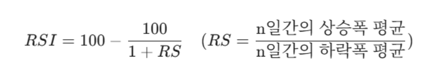 상대강도지수(Relative Strength Index)는 현재 가격의 상승 압력과 하락 압력 중 어느 쪽이 더 강한지를 나타내는 지표입니다. 0에서 100 사이의 숫자로 표시되며, 시장의 과열 혹은 침체 정도를 파악하는 데 특화되어 있습니다. RSI는 다음과 같은 수식을 바탕으로 산출됩니다.
