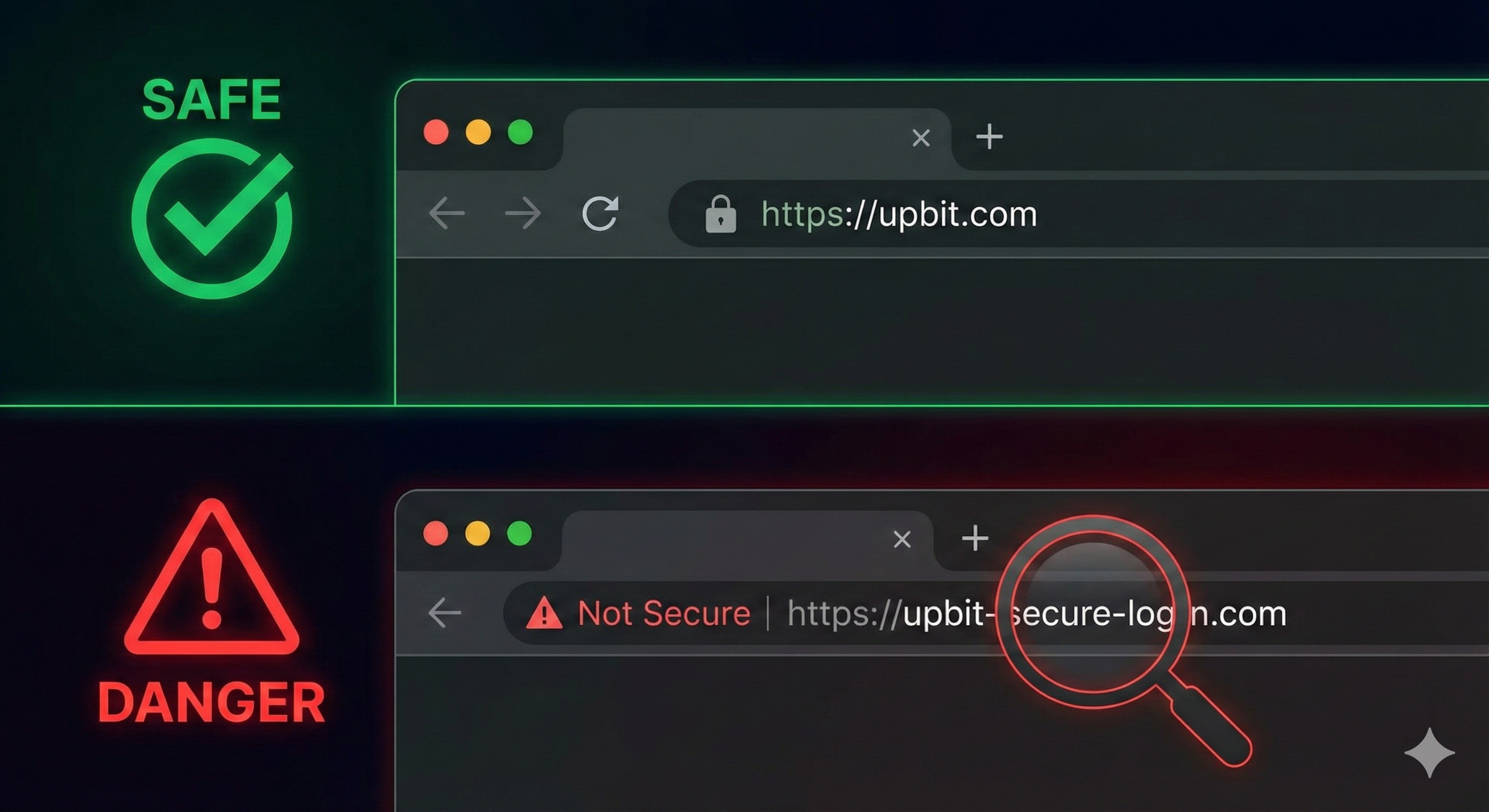 가짜주소(예시) : upbit-login.com, upbiit.com, u-pbit.com