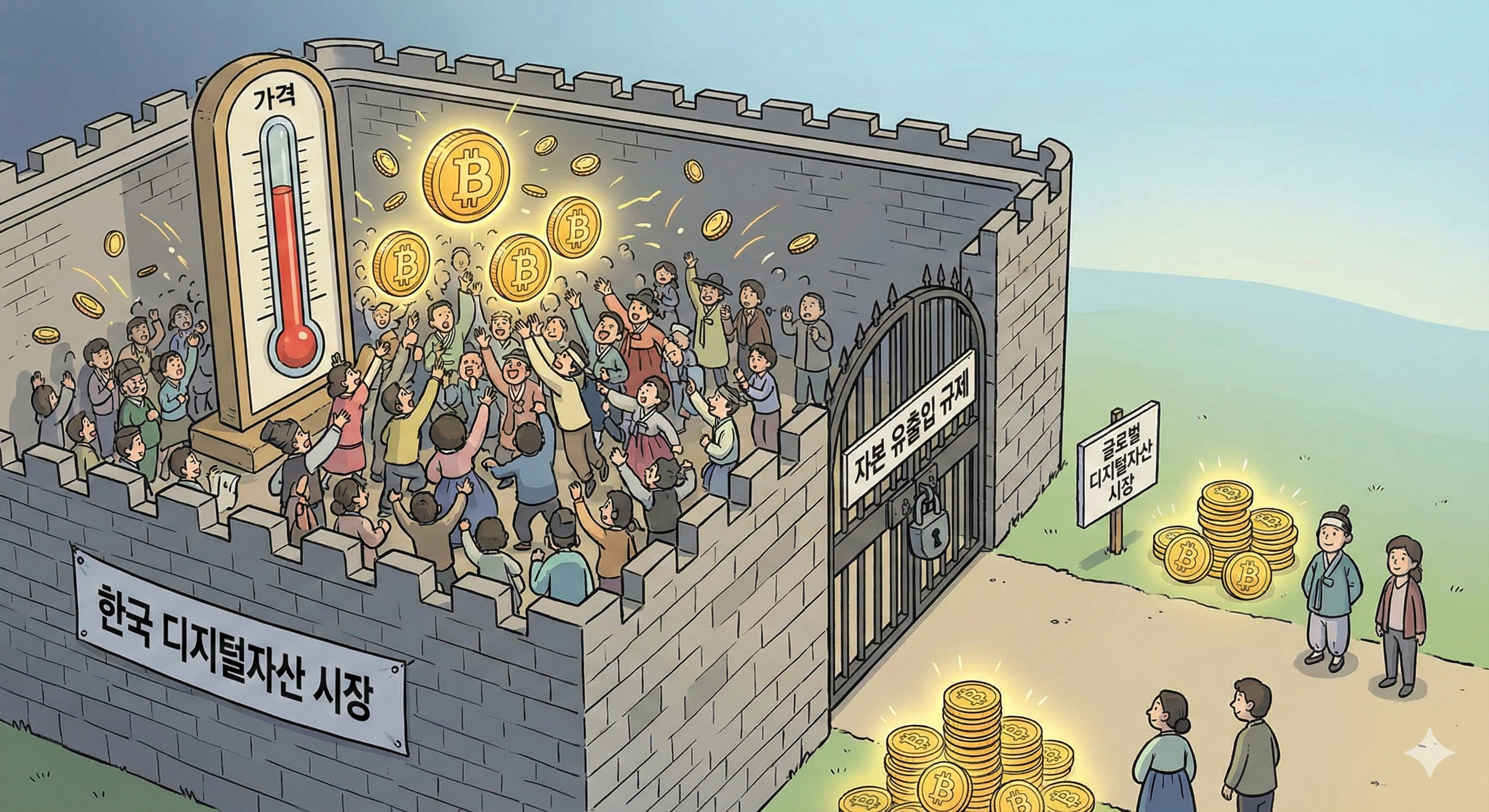하지만 한국은 외국환거래법의 관련 규정으로 인해 거액의 원화를 해외로 송금해 디지털 자산을 사오는 것이 매우 어렵습니다. 또한, 국내 시장에서는 가격 변동성을 헤지(hedge)할 수 있는 선물, 옵션 등 파생상품 거래가 허용되지 않아 재정거래를 통한 가격 격차 해소에 제약이 따릅니다. 그래서 한 번 발생한 프리미엄이 높게 유지되고, 또 오래 유지되는 독특한 현상이 발생하는 것입니다.